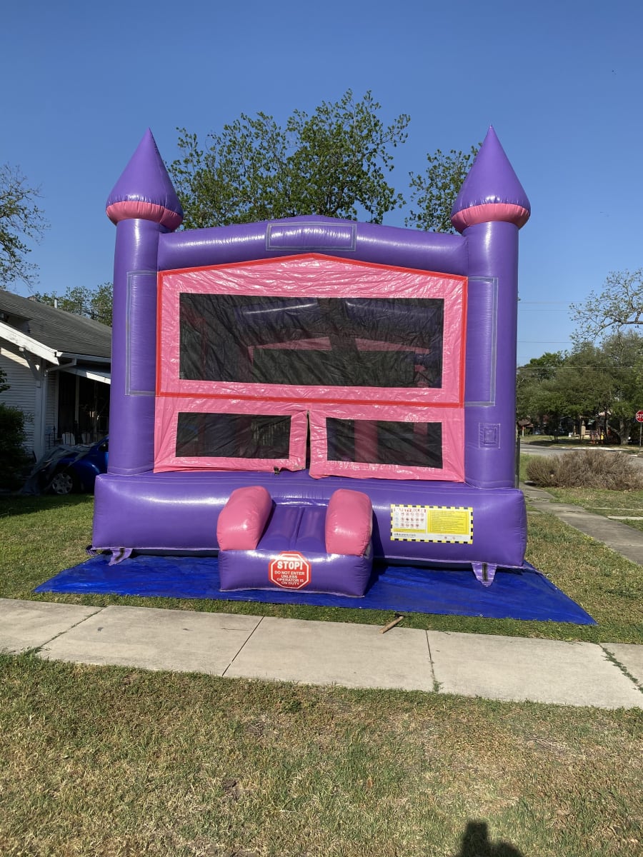 Calling all princesses! These colors are best for all your princess parties with the purple and pink color scheme! This 3 in 1 House is amazing with its built-in basketball hoop to bring the inner athlete out, 2 pop up sticks for kiddos to tackle and play with, and plenty of room to just bounce around!