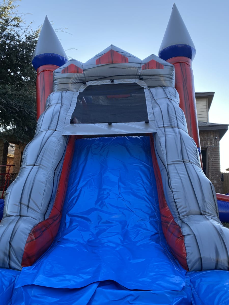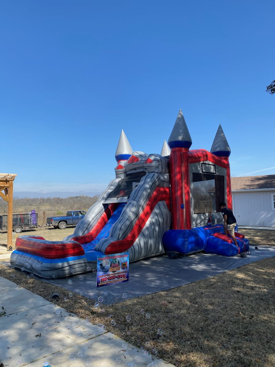 Too hot outside? Book this as a waterslide Red & Grey combo Fun House WET