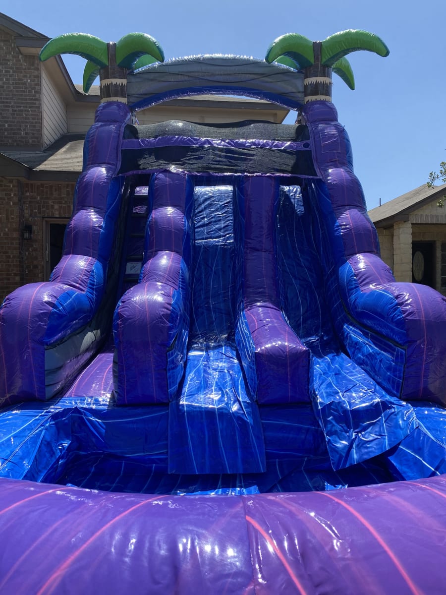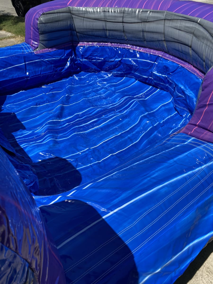 Whether you're hosting a birthday party, a family gathering, or simply want to beat the heat, our waterslide is the perfect addition to your event. With two racing lanes, you can challenge your friends and family to see who can reach the splash pool first. Crafted with safety in mind, our waterslide features great three point of contact railing system! Two lanes are better than one! Book your next funday today!