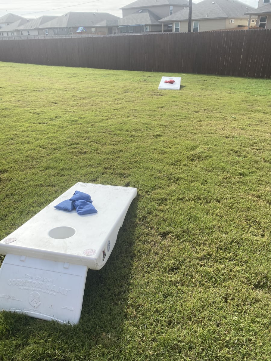 This Cornhole board is big hit at any event your hosting! Our heavy duty plastic boards are weatherproof regulation size boards and bean bags and can use on any surface for your competitive or recreational games! They are very sturdy unlike wooden boards and don't have to worry about pop up showers and the board warping! Its a great add on game for the dads on grilling duties or the older kiddos that are "too cool" to go inside the bounce house! first to 21 wins, make in the hole is 3 points,land on the board is 1 point. may the best team win! Add on for your next party today!!!